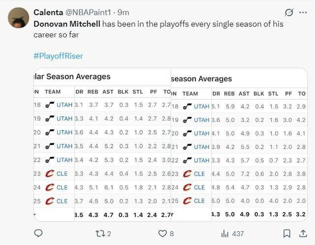回顾米切尔的职业生涯,自2017年进入联盟以来,他已经连续8个赛季进入季后赛。本赛季的两场季后赛,他都拿下了30+的分数,展现了他在关键时刻的稳定发挥。米切尔的出色表现不仅让球迷们为之疯狂,也让对手感到敬畏。
